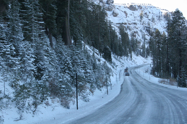 As you can see, the weather was cold but clear. Temperature at the top of the pass was around freezing, and although the roads were clear a recent snow shower had dropped a couple of inches of snow.